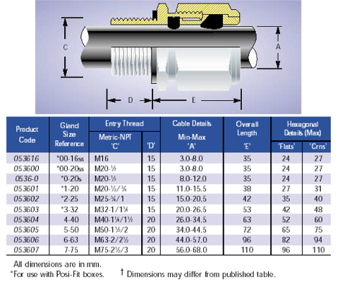 - Fitted with two specially formulated elastomeric seals. Inner seal seals on the cable sheath. Harder outer seal grips the cable, giving superior cable retention and IP rating